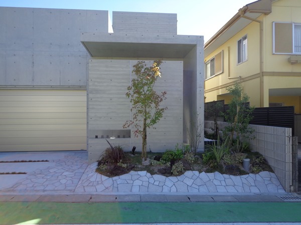 そんな建物外観に合う外構のアイデアを、お施主様と共に意見交換しながら完成させていきました。
