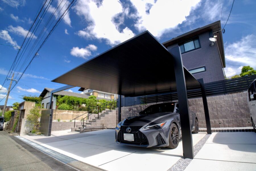 お客様ご指定のデザイン性の高いカーポートを採用。